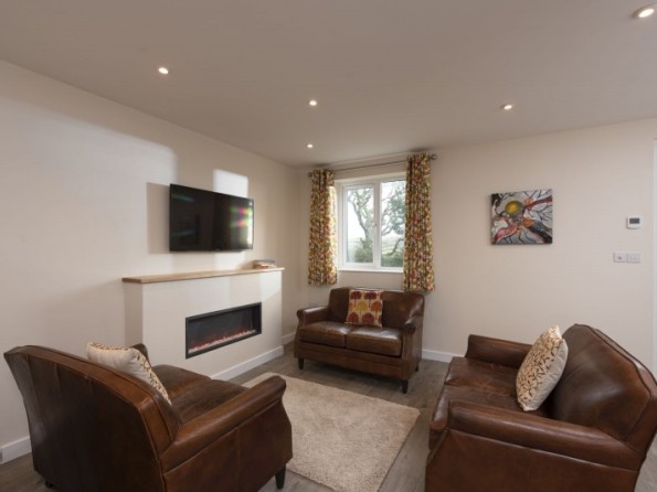 - Three leather sofas, wall mounted flat screenSmart TV with Smart TV