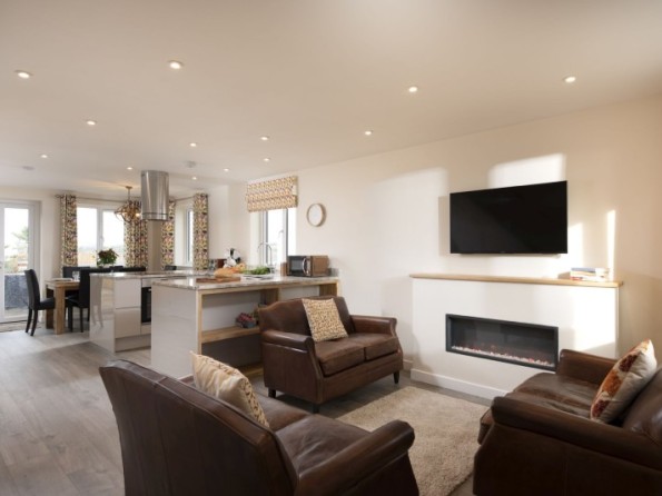 The lovely open-plan layout of the living area makes for an inviting space to relax in and features like under floor heating, plush carpeting and Smart TV’s in every bedroom lend a really luxurious feel to the property. A super kitchen can be found at the centre of the home and there’s a large dining table with seating for six that makes a great place for socializing. The remote-control fireplace keeps things cosy on those evenings when a bit of lounging around is called for, and when you're in the mood for outdoor entertaining you’ll discover a spacious patio complete with seating and a barbecue.