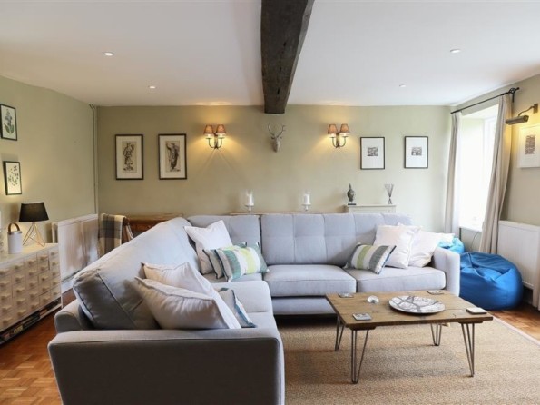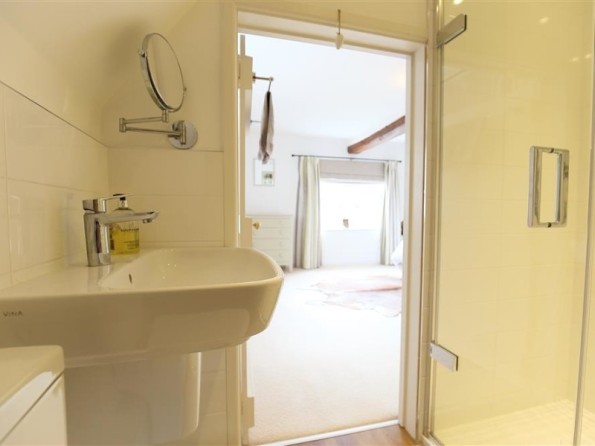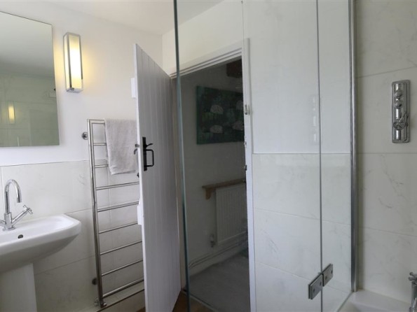 Three bedrooms: 1 x king-size double with en suite shower room with shower, basin and WC, 1 x king-size double (zip/link can be twin on request), 1 x double. Bathroom with bath, power shower over, basin and WC. Ground floor basin and WC. Kitchen with dining area. Sitting room with wood burning stove.