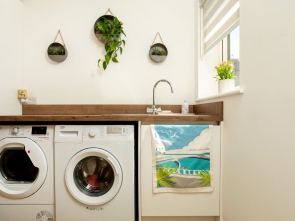 The separate utility room has hooks for coats or towels and houses the washing machine, tumble dryer, iron / ironing board and vacuum cleaner