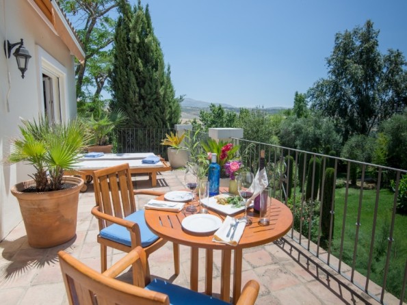 The hotel feels wonderfully remote but it is just a short drive from the vibrant town of Ronda, the largest of the white villages. The hotel is set in the beautiful rolling countryside of Andalusia’s Serrania de Ronda Mountains and is surrounded by national parks and the famous white villages. Sevilla, Córdoba, Malaga, Jerez and Granada are right on your doorstep. Historic Ronda with its restaurants is close by and it’s just a 45 minute drive to Los Arcos Golf Course, 60 minutes to the beach and 90 minutes to Malaga and the Airport. Private guided walking and cycling tours, horseback riding, as well as wine tasting tours, are all available to book at the hotel.