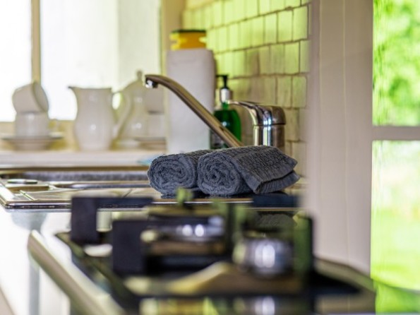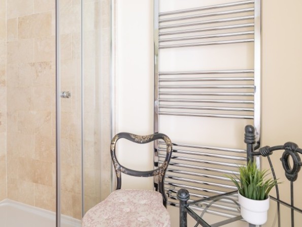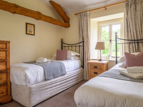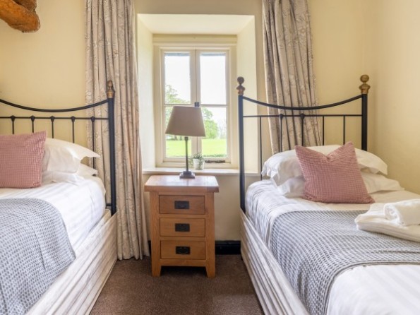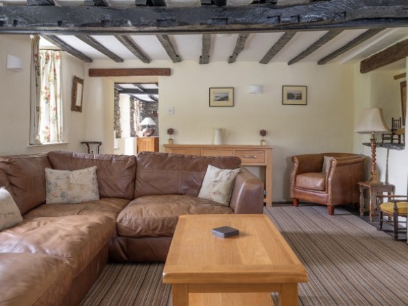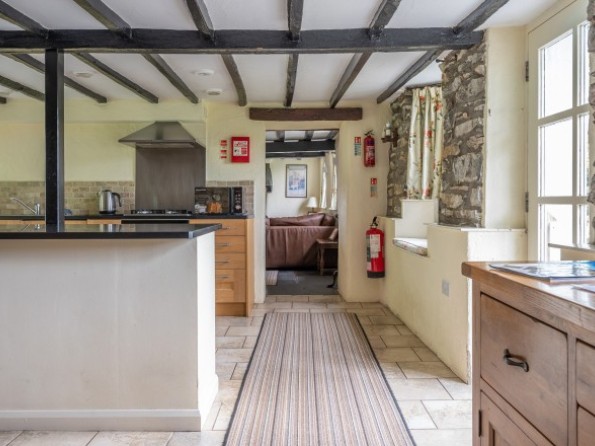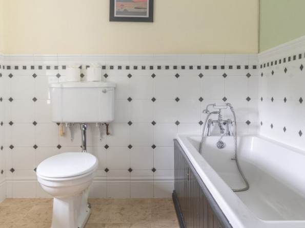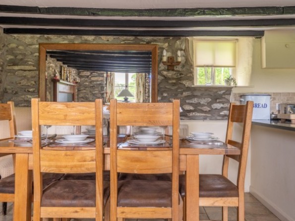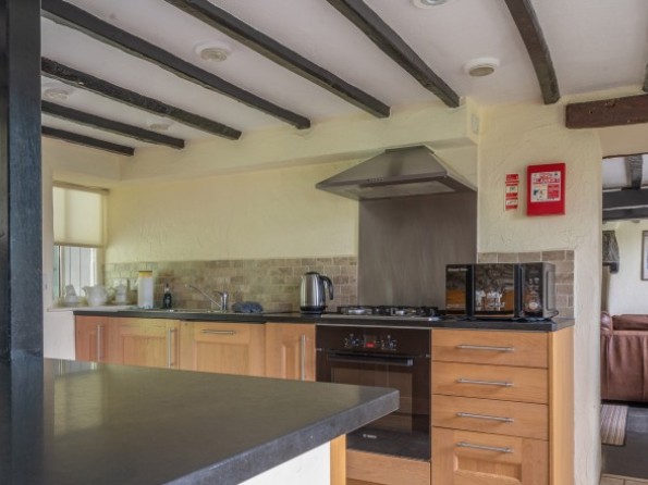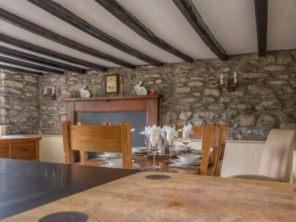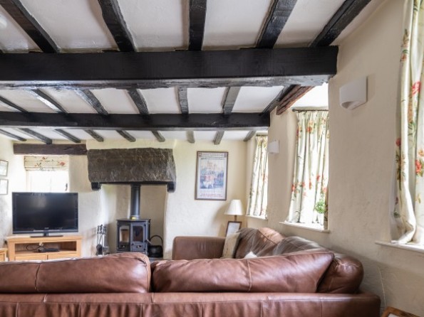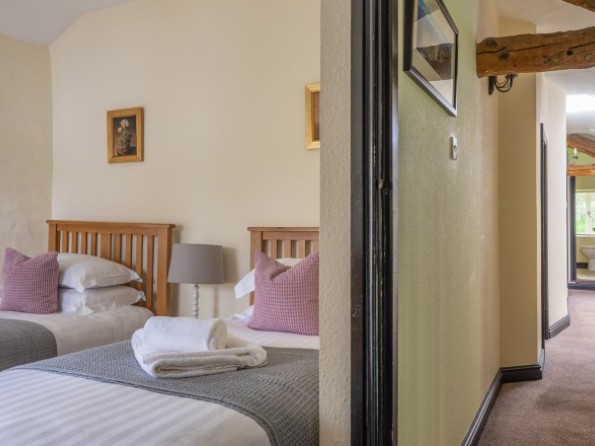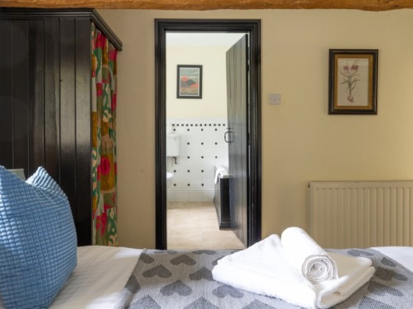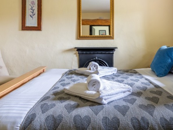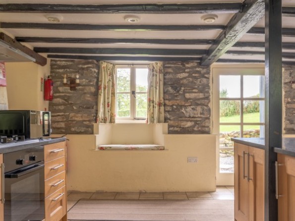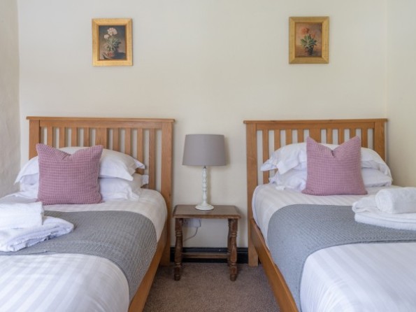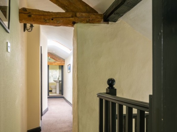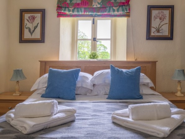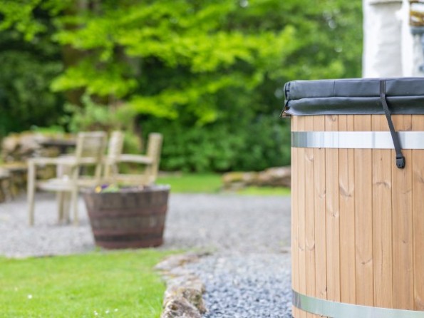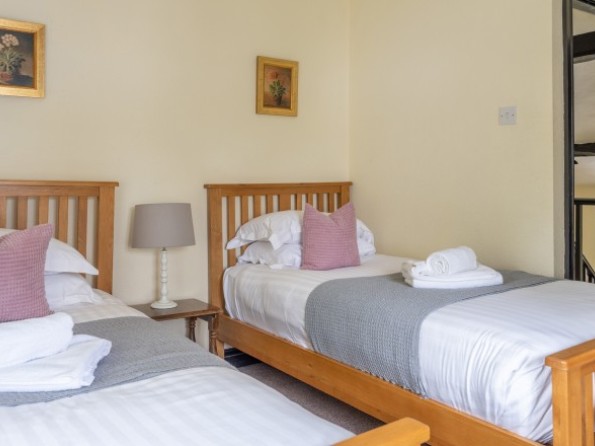 Three bedrooms: 1 x king-size double with en-suite bath, basin and WC, 2 x twin. Shower room with shower, basin and WC. Kitchen with dining area. Sitting room with woodburner. Wood fired hot tub.
