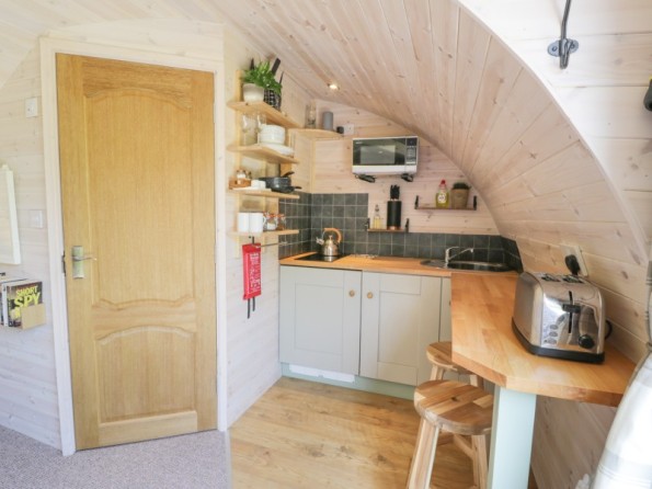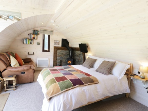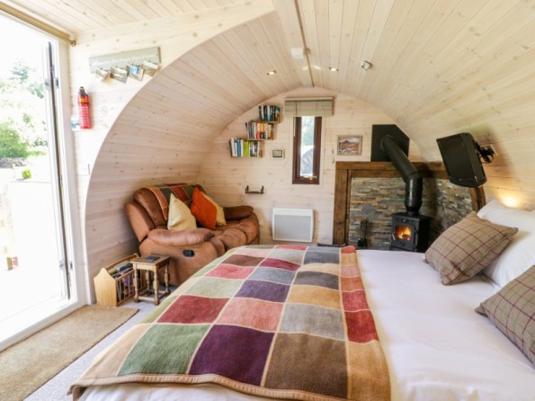 A detached lodge cottage resting close to the city St Asaph. Within this property you will find an open-plan studio-style accommodation, offering a double bed, a sitting area with a woodburning fire and a kitchen area. Completing the interior is a shower room, complete with a walk-in shower, basin and WC. Outside, you will find a small decked area with seating and a BBQ on request. Idris Pod is a romantic retreat for a couple looking to escape their daily routines. Note: One well-behaved dog welcome.
