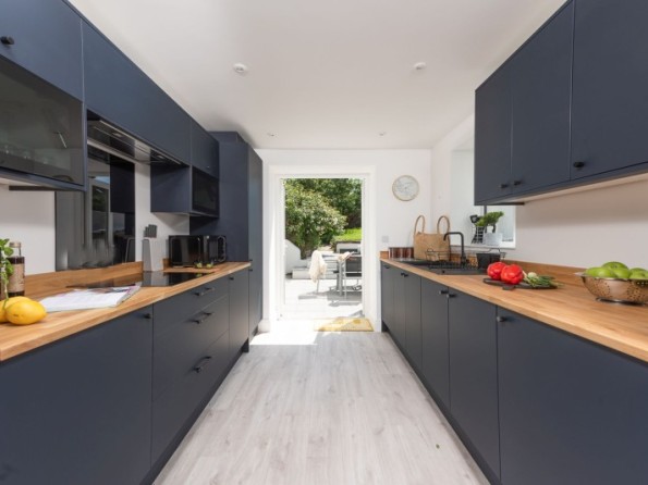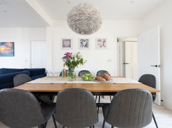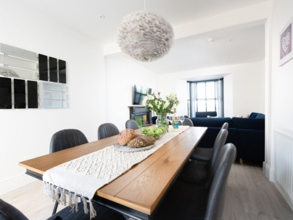 Recently refurbished to a superb standard, this large, contemporary home still bursts with features that nod to the styling of its original Victorian heritage, exuding a welcoming warmth and ease throughout. The bay-fronted living room offers guests plenty of luxurious space to unwind in with plush sofas and an original fireplace taking centre stage, and its open plan layout with the dining room means that after dinner children can play board games at the table while grown-ups relax in front of the TV.