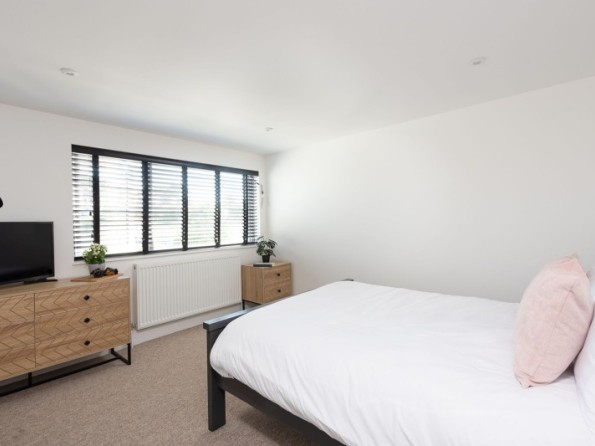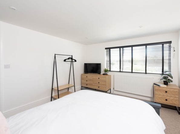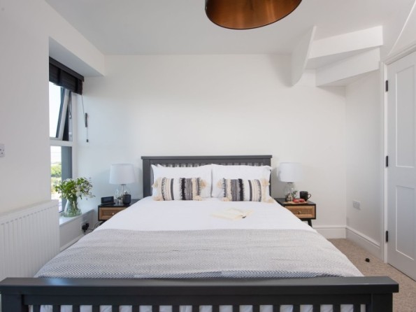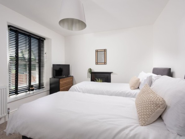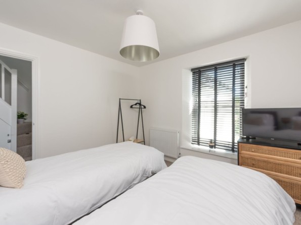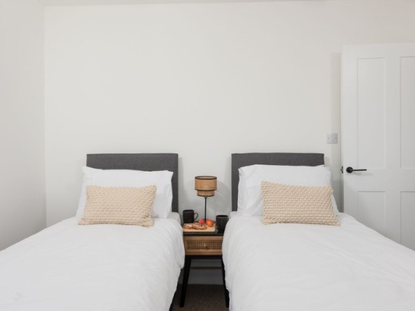 Situated on the first floor, bedroom two is furnished with twin beds that can be linked to form a super king. This room has a smart TV as well as an alarm clock, bedside tables (with hairdryer), bedside lamps, chest of drawers and stand-alone wardrobe