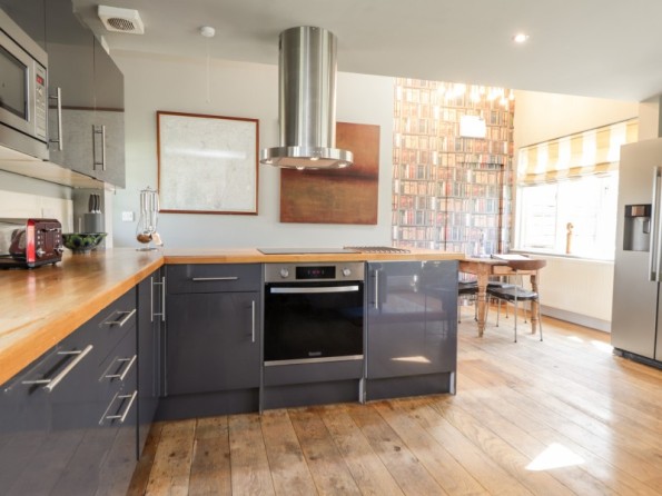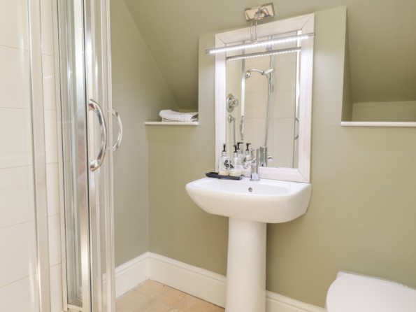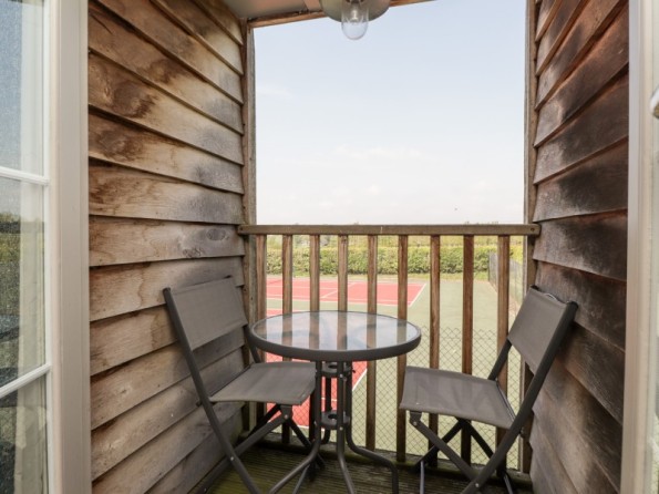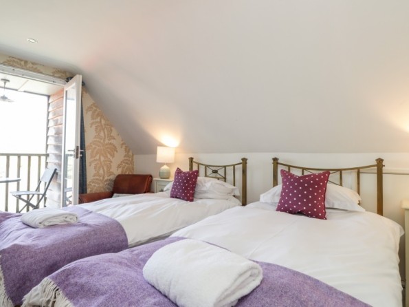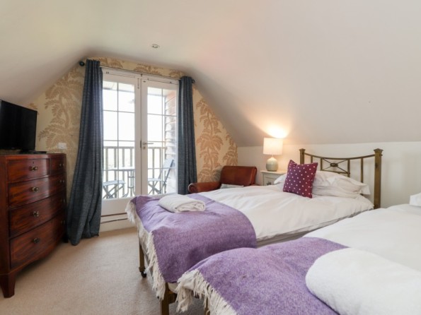 Two bedrooms: 1 x double, 1 x twin (zip/link can be double on request) with balcony and TV. Bathroom with bath, basin and WC. Shower room with shower, basin and WC. Open-plan living space with kitchen, dining area and sitting area with woodburning stove