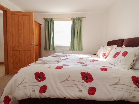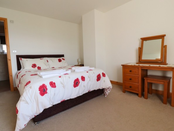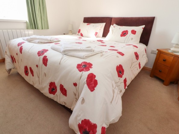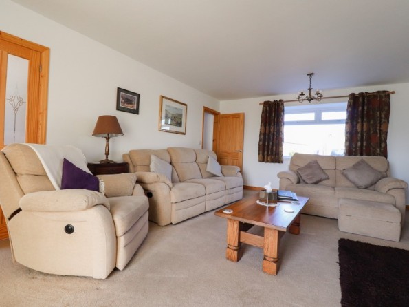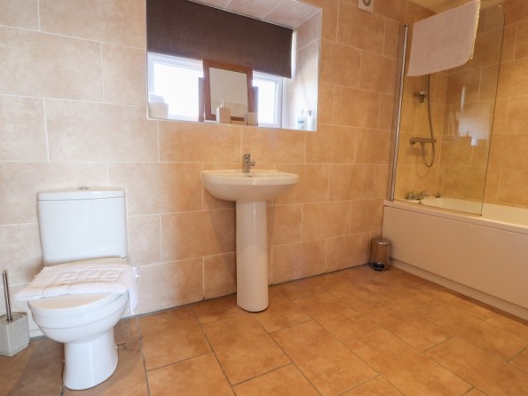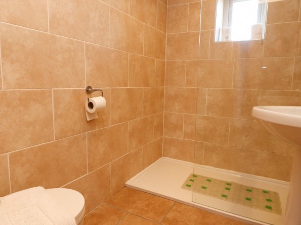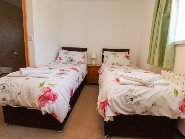 Three bedrooms with TV: 1 x super king-size double (zip/link, can be twin on request) with en-suite bath, shower over, basin and WC, 1 x king-size double with en-suite shower, basin and WC, 1 x twin with en-suite shower, basin and WC. Ground floor basin and WC. Kitchen with dining area and sun room. Sitting room with open fire and patio doors. Shared external clubhouse with pool table, darts, toilets and two showers.