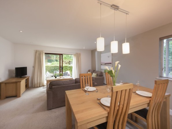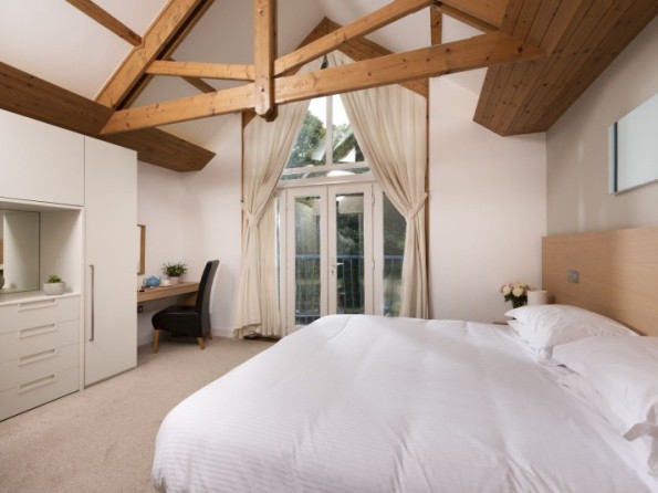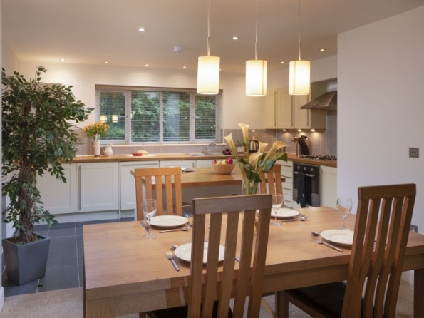 Set in a peaceful woodland site, Kernow Vista is a luxurious home from home near Truro, Cornwall. The spacious open plan living, kitchen and dining area is a bright and comfortable space to spend time together in, and beautiful design features including a vaulted open-truss ceiling and cathedral window in the master bedroom lend a truly luxurious feel throughout. The property has two large en-suite bedrooms providing ample space for four guests, and a furnished patio makes for the perfect place to enjoy an al-fresco breakfast or a glass of wine.