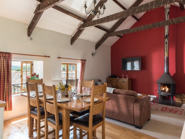 The barn sleeps up to eight people in four bedrooms - two doubles and two twins. The bedrooms, a bathroom and a second WC are on the ground floor. The first floor has a large open plan beamed kitchen / living room with oak flooring, and a dining area. The fitted kitchen is well equipped and includes a dishwasher and washing machine. The living area has a log burner. The barn comes complete with a 49″ wall-mounted satellite television, Blu-Ray/DVD player and 5.1 surround sound and you can even connect your iPod / iPhone wirelessly to the sound system. There are books and DVDs, and wifi throughout. Luxury Egyptian Cotton bed linen, white fluffy cotton towels, complimentary toiletries and heating (via efficient storage heaters) included.
