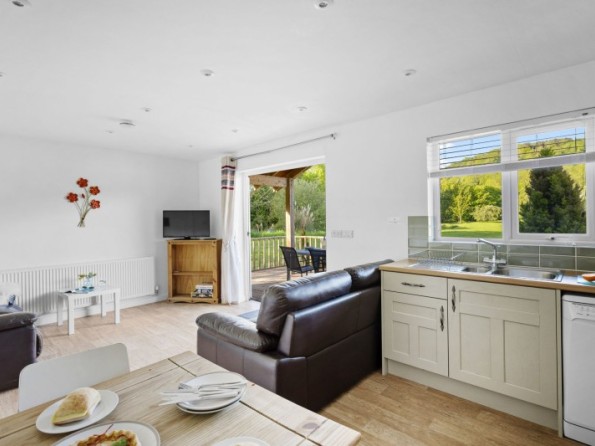 Step inside your modern lodge to find a welcoming open plan living area perfect for preparing dinner as a family, making plans for the following day, and curling up together in front of the TV. And on warm summer nights, you can push back the large patio doors and relax on the decking with a good book and glass of wine, before watching the sunset from your very own inviting hot tub.