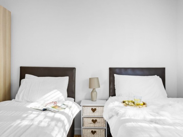 Twin ‘zip and link’ beds that can be made up as a king size bed (please request at time of booking), wardrobe and dressing table.