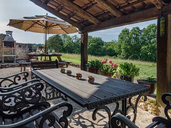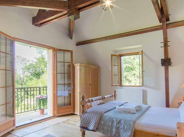 The Maison du Pain is estimated to be at least 150-years old and after a comprehensive refurbishment now consists of five bedrooms and three modern bathrooms. The well-appointed kitchen and dining area complement a large outside BBQ and dining terrace that is partially covered from sun and rain. It is here that the original bread oven is located. The modern kitchen has a large breakfast bar, a large double-oven range cooker with five ring ceramic hob, an integrated dishwasher and is well equipped. There are five bedrooms (one single, three doubles, one triple) including a large ensuite with private ground level terrace, a spacious timber framed room with private balcony and a cosy loft room with exposed beams. There are three bathrooms (one ensuite), one with a cast iron bath and shower, and the other two with showers. The living room has a woodburner, piano, flatscreen HDTV with UK satellite channels, WiFi, DVD’s, books and games.