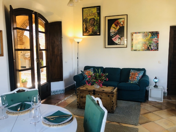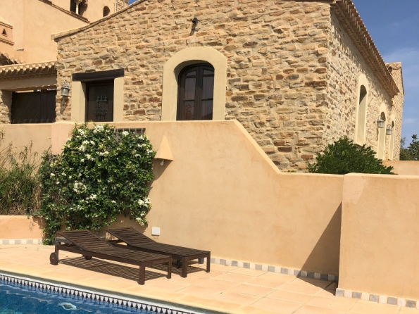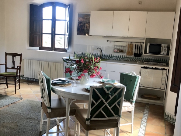 The apartment is in the southwest wing of the house but has its own private entrance which opens out onto the open plan kitchen / dining / living room area. This area is bright and spacious, with large windows overlooking the pool area and opening out into the interior courtyard. A door leads through to the ensuite double bedroom. There is wifi throughout.