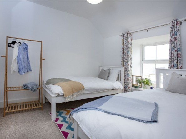 Situated on the first floor this airy and inviting room is furnished with two single beds, reading lamps and a hanging rail for clothes