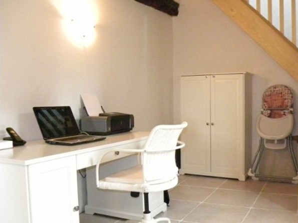The gite has three bedrooms - one king en suite, one double and one twin. There is also a double sofa bed on the mezzanine for additional guests. The main bedroom has windows on three sides with a wonderful window seat on one of the windows. The double room has a full size leather sleigh bed and windows on two sides. The twin room has views over the east garden. There’s a bathroom in between the double and the twin bedroom. The kitchen is well equipped and has a table and six chairs for casual dining. There’s a large stone fireplace with a log burning stove. The sitting room is very spacious, has lots of comfortable seating, widescreen satellite TV and DVD player, and a music system, and there are double doors leading to the west facing terrace. There’s a library of books, local information guides, CDs and DVDs, and wireless internet throughout. There’s an additional table and chairs for more formal dining. There’s a separate office space which can be accessed from the kitchen. Stairs lead up to a mezzanine floor with a comfortable sofa bed.