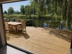 • Large private decking on the bank of the river Avon with seating area and dining table.