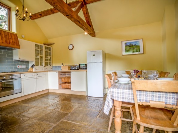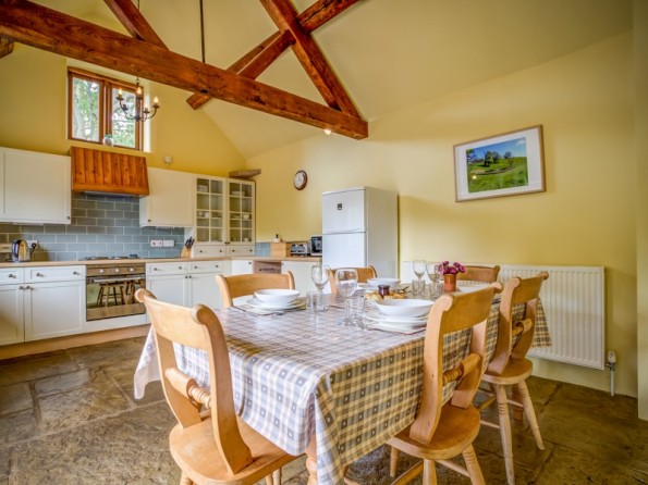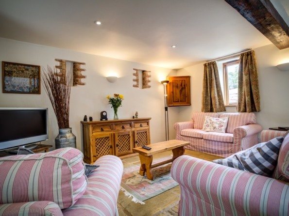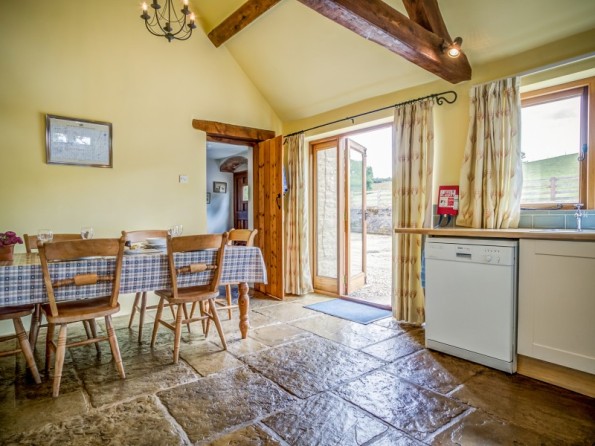 Little Barn is a detached barn conversion found in Ascott, Warwickshire. It has been renovated from a stone barn into a stylish country cottage overlooking farm fields. Inside has exposed beams, solid pine doors and a flagstone floors. Inside has a large living room with an open-plan fitted kitchen and dining area. There is a double bedroom and a twin bedroom with a separate bathroom and WC. Outside is a large and secure gravelled courtyard with large pots of flowers and garden furniture. There is parking available at the property. Little Barn is an excellent property for those countryside lovers.