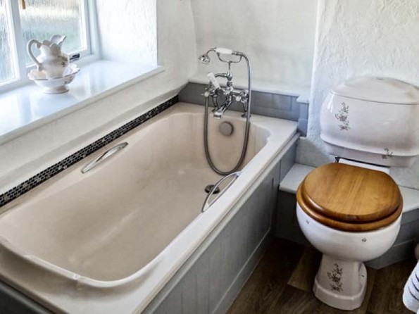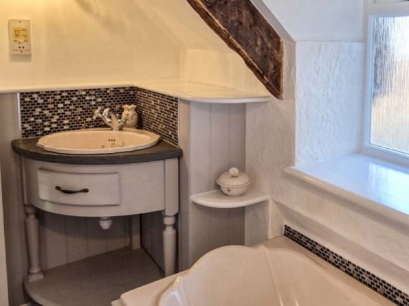 Two bedrooms: 1 x king-size double, 1 x single. Bathroom with bath, hand-held shower, basin and WC. Ground floor shower room with shower, basin and WC. Kitchen with dining area. Utility. Sitting room with electric fire.
