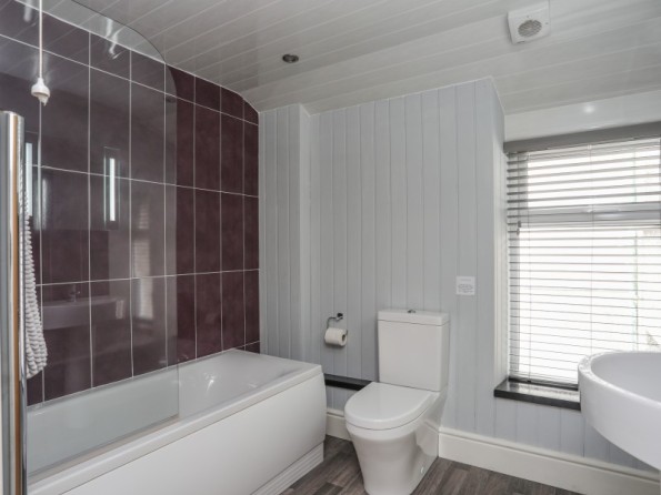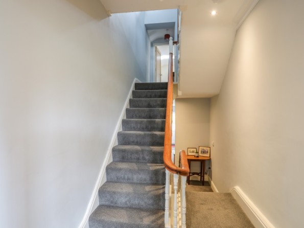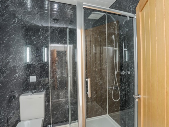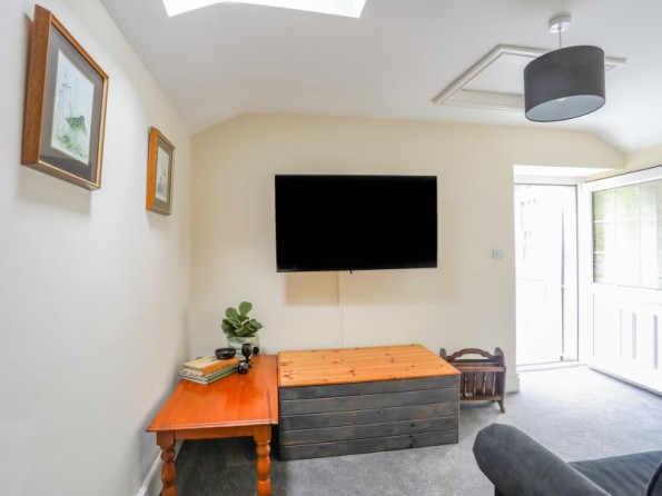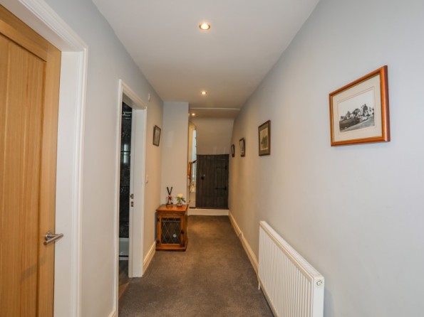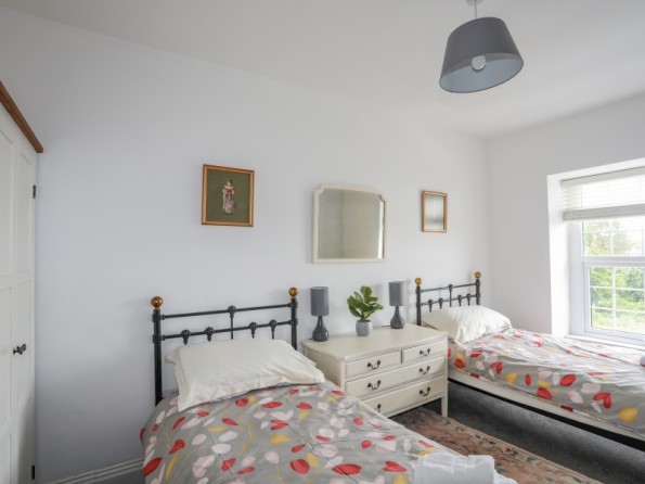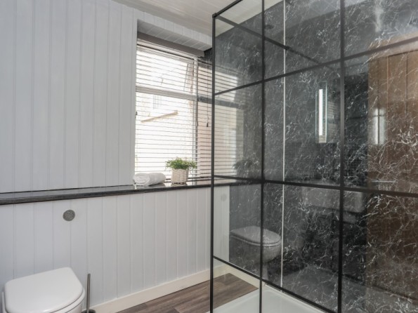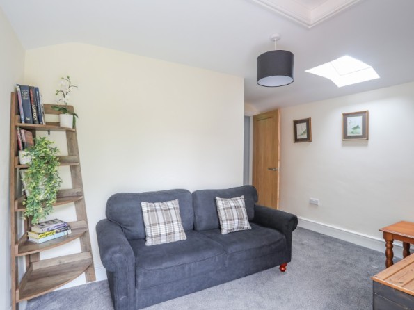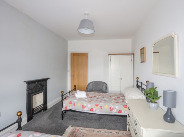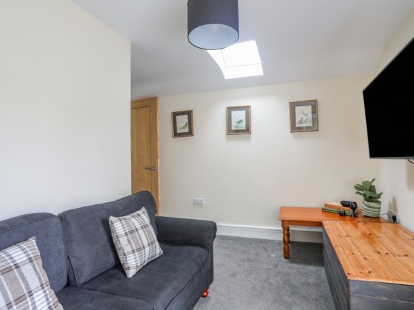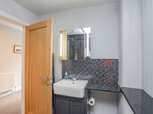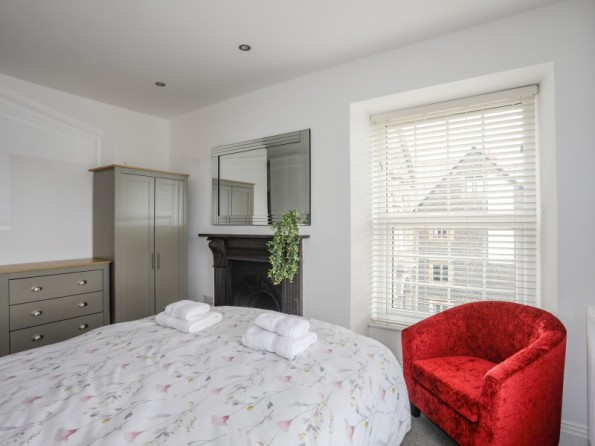 Over three floors. Three bedrooms: 1 x second-floor king-size double with en-suite shower, basin and WC, 1 x second-floor double, 1 x second-floor twin. Bathroom with bath, shower over, basin and WC. Ground-floor shower room with walk-in shower, basin and WC. Open-plan living space with kitchen, dining and seating area with electric fire. Utility. First-floor snug