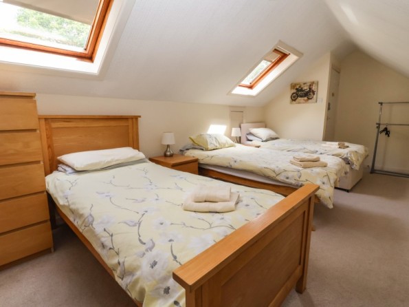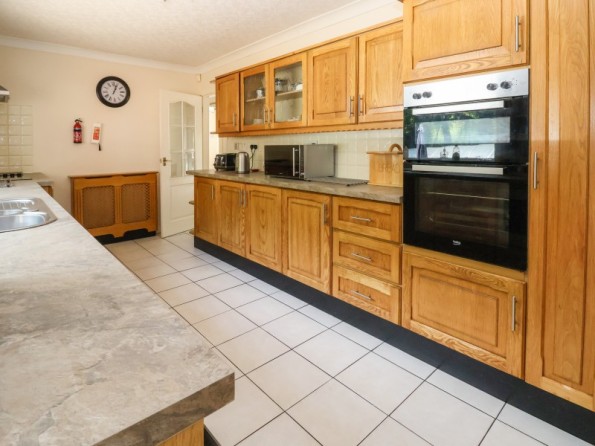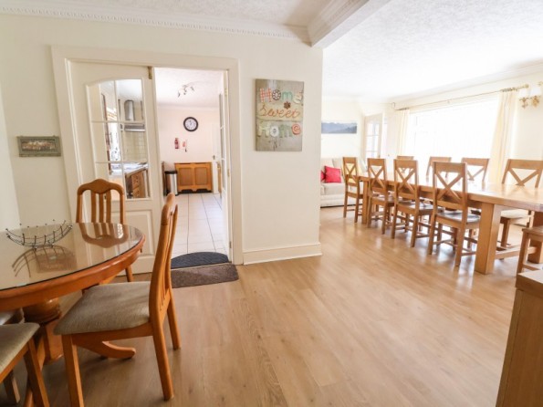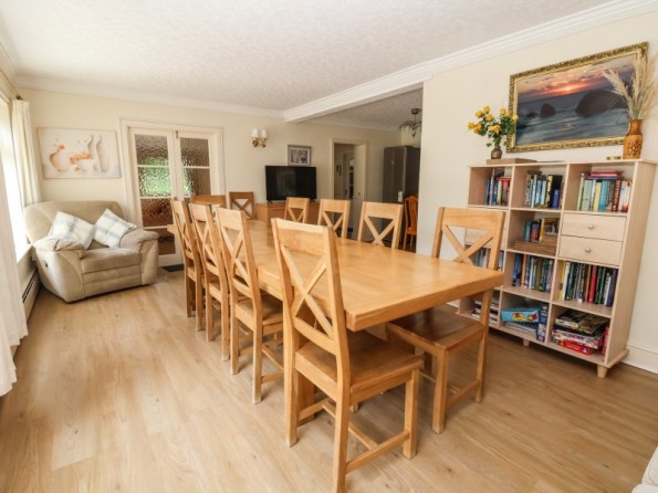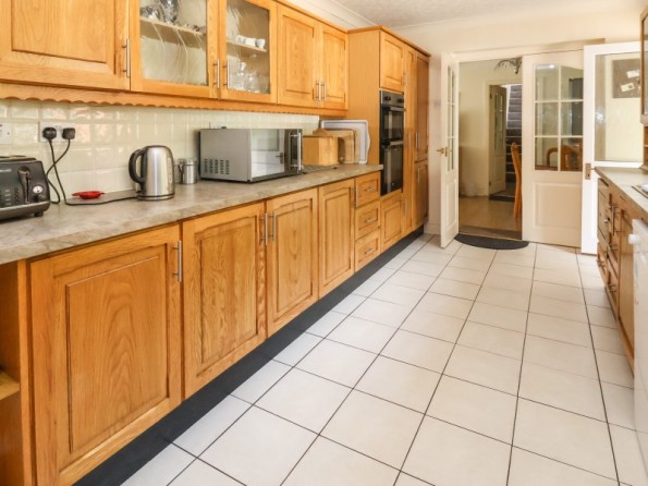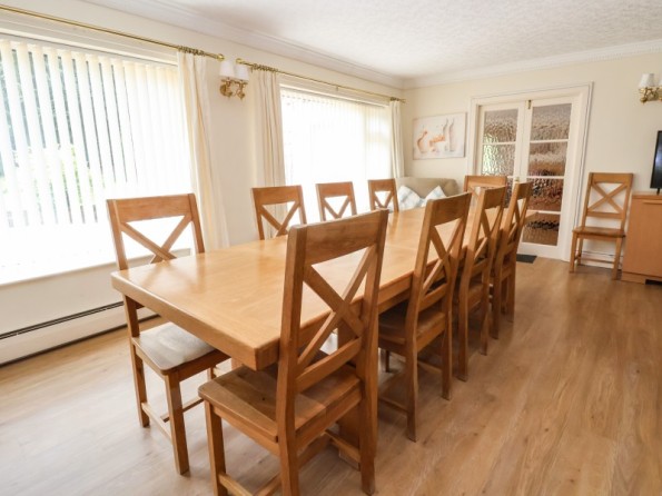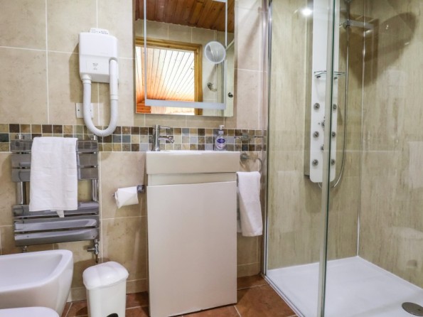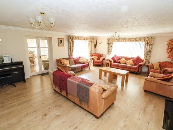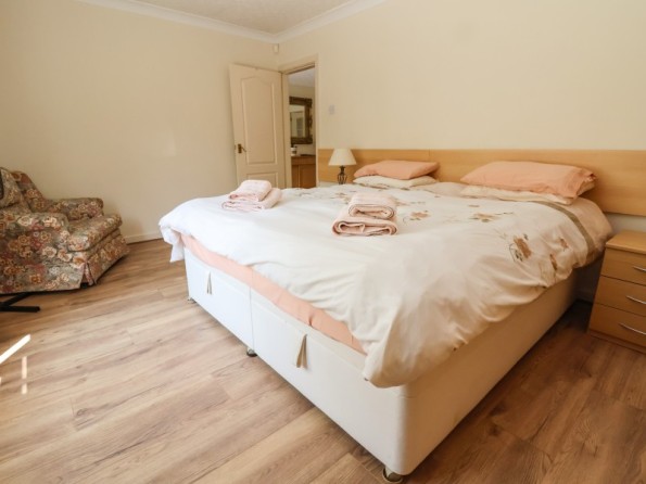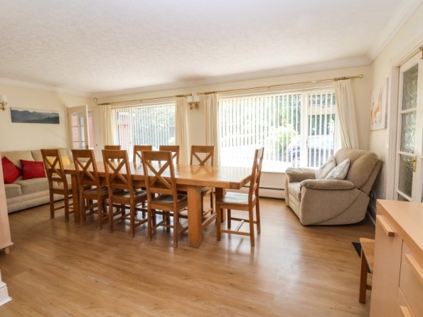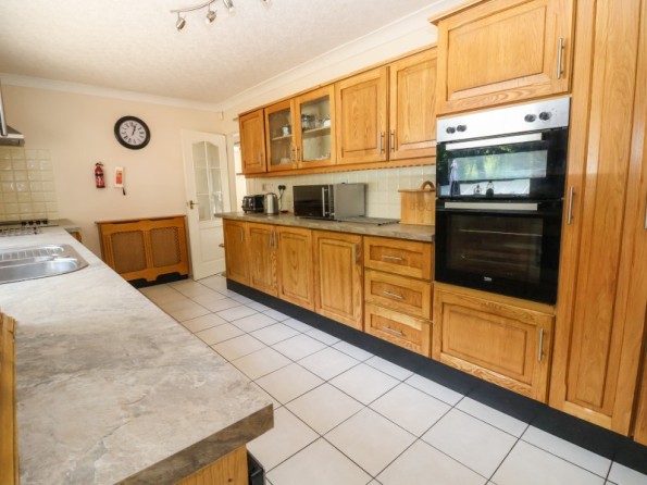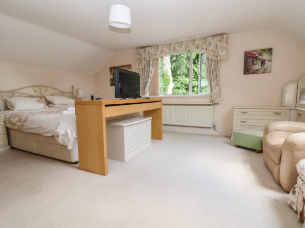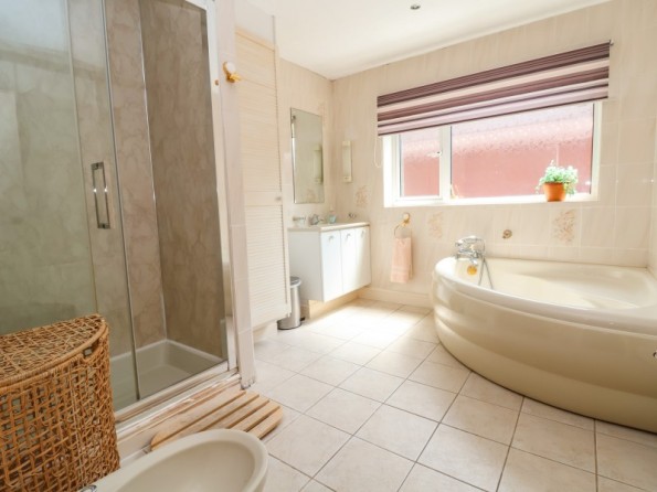 Llys Offa is a detached house in Ruabon, five miles from Wrexham. The property has two king-size and two super-king size bedrooms, with one of each on the ground floor, along with a twin room with pull-out trundle bed. One of the king-size rooms has an en-suite and a balcony, and there are two family bathrooms, one with sauna. There is a kitchen, utility, dining room, sitting room and snooker room. Outside is an acre of grounds with stream, sitting areas, patio, BBQ and heated swimming pool with sliding canopy cover. There is also an external changing block with shower room available in the summer months. There is off road parking for 8 cars. Llys Offa is ideally placed for enjoying North Wales, Chester and Shropshire, in an area full of great walking, biking and spectacular scenery.