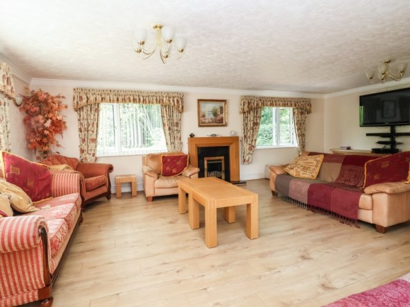 Superb, spacious holiday home near Llangollen. Heated outdoor swimming pool, snooker table, sauna, acres of garden, stream, WiFi, balcony, piano. Several golf courses close by. Ideal touring base. Llangollen 6 miles.
