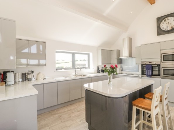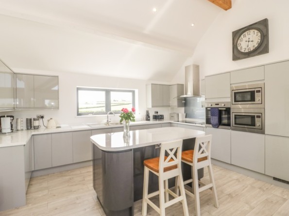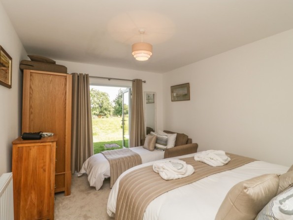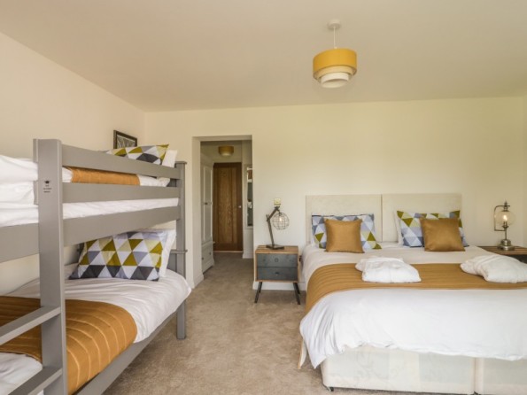 Reverse-level accommodation. Four bedrooms: 1 x ground-floor family bedroom with king-size double (zip/link beds, can be made into twins on request) and bunk bed with en-suite shower, basin and WC, 2 x ground-floor king-size double (zip/link beds, can be made into twins on request), both rooms have a single sofa bed, 1 x king-size double (zip/link beds, can be made into twins on request). Ground-floor bathroom with bath, separate walk-in shower, basin and WC. Shower room with walk-in shower, basin and WC. Kitchen/dining room. Sitting room. Ground-floor utility.