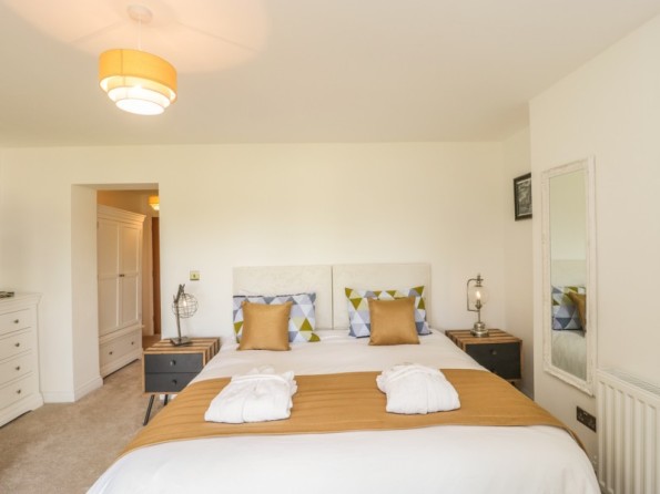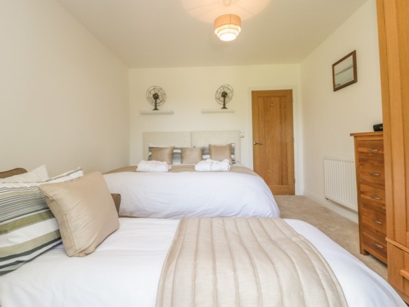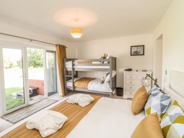 Longmynd is a detached property resting on the outskirts of the city of Gloucester. It comes with four bedrooms, comprising of a ground-floor family bedroom with a king-size double (zip/link beds, can be made into twins on request) and bunkbed with en-suite shower, basin and WC, two ground-floor king-size doubles (zip/link beds, can be made into twins on request), each with a single sofa bed for additional guests and a king-size double (zip/link beds, can be made into twins on request, sleeping up to 10 people. On the ground-floor you will find a bathroom with a bath, separate walk-in shower, basin and WC, and a shower room with a walk-in shower, basin and WC. Completing the interior is a first-floor kitchen/diner and a first-floor sitting room. Outside, there is a balcony with table and chairs, and a spacious lawn garden as well as off-road parking for seven cars. Longmynd is a superb base for exploring this pretty part of the country.