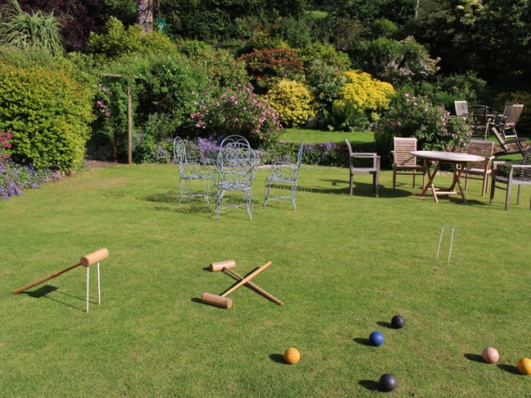 Fingals is set in a lovingly tended garden with secluded and secret corners where you can read and relax. If you’re quiet enough, you’ll see and hear a huge variety of birds, and in the evening see bats. The swimming pool is in a conservatory, full of exotic plants, which opens up to the elements in the summer out on to the stream. There is a contraflow pump at one end for those wishing to exercise. The Sauna has a large window looking over the stream. There is a gym equipped with a rowing machine, exercise bikes, a cross trainer and multi gym. The Games Room has pool/snooker, table football and an outside ping pong patio. The grass tennis court is the envy of many a club player and is suitable for competitive tennis in the beautiful surroundings of our walled garden. There is a croquet lawn.