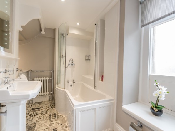 Two floors: One double kingsize bed with vanity unit. One single bed with vanity unit. Ground floor bathroom with bath, shower, basin and WC. Kitchen diner with woodburning stove. Sitting room. Entrance hallway.