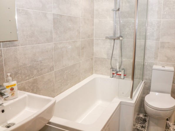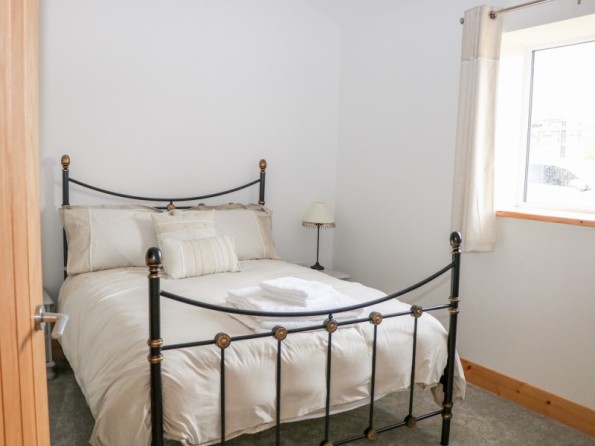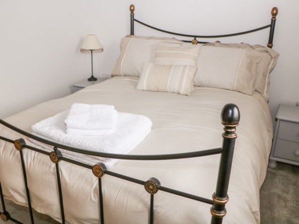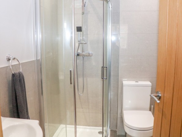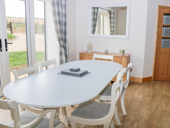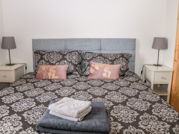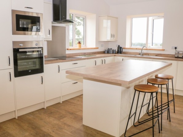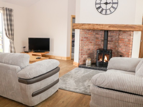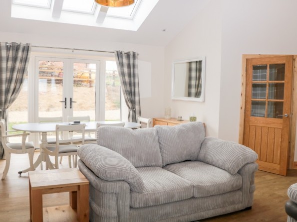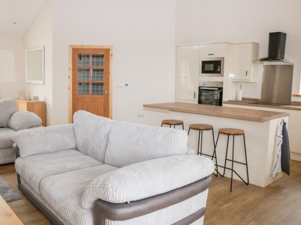 Two bedrooms: 1 x super king size (zip-link into twins available on request) with en-suite shower, basin and WC, and 1 x double with en-suite bathroom with bath, shower over, basin and WC. Cloakroom with basin and WC. Open-plan living room with kitchen, dining area and sitting area with woodburning stove.