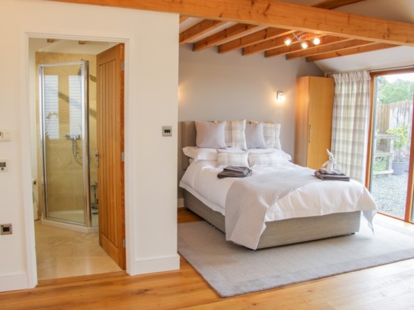 All ground-floor. Studio-style open-plan living room with a kitchen, dining area and sitting area with one king size bed with woodburning stove. Shower room with shower, basin and WC