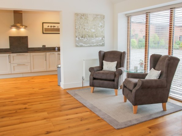 This stunning barn conversion is situated in the rural countryside of Meeson, near Waters Upton in Shropshire. Open-plan layout. Woodburner. Waters Upton 1.5 miles; Telford 9 miles.