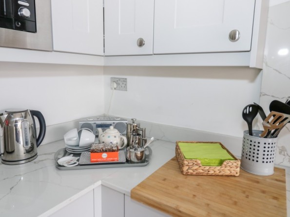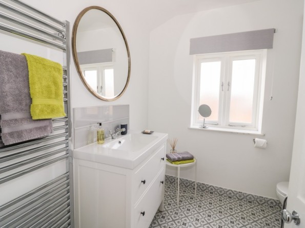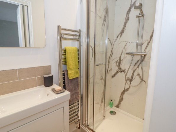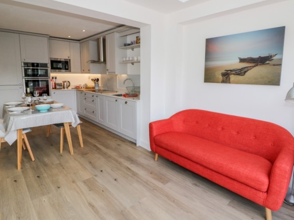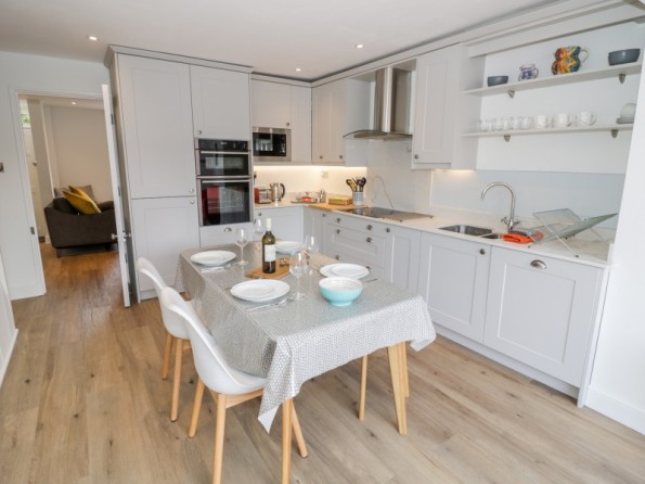 Two bedrooms: 1 x king-size double with en-suite shower room with walk-in shower, basin and WC, 1 x twin. Bathroom with bath, shower over, basin and WC. Kitchen with dining area. Sitting room.