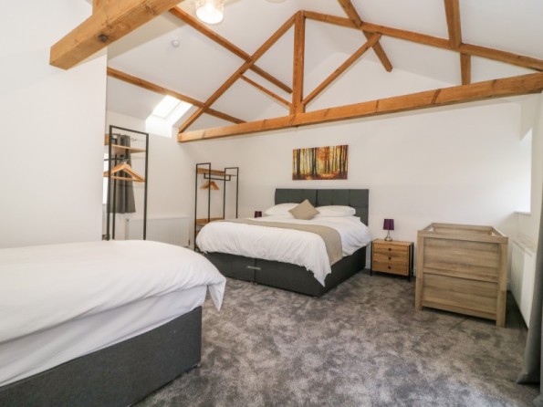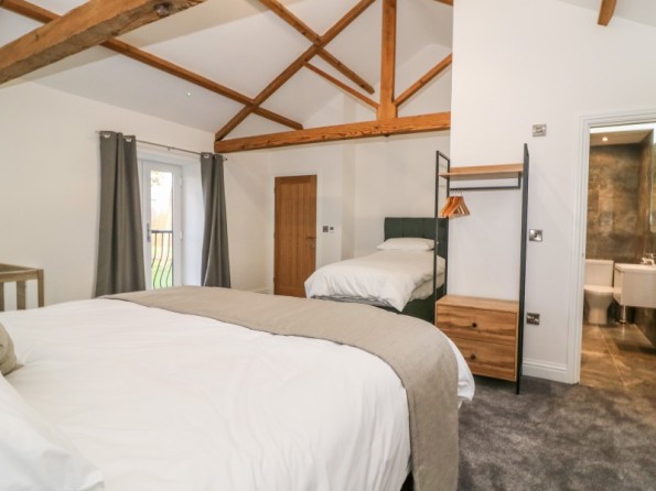 Miller's Wheel is a superb barn conversion resting in Follifoot near Spofforth, North Yorkshire. There are two bedrooms in the property sleeping five guests, made up of a family room with a super-king-size (zip/link, twin on request), a single and a cot with an en-suite bathroom, and a super-king-size with an en-suite shower room. There is also a cloakroom and an open-plan living space with a kitchen, dining area and sitting area. Outside you will discover ample off-road parking with an electric car charging point, a private patio with furniture, and a rear lawn with a pagoda and furniture. Miller's Wheel is an exceptional choice for an escape to explore the Yorkshire Dales with friends or family.