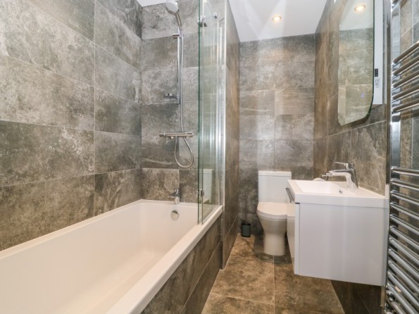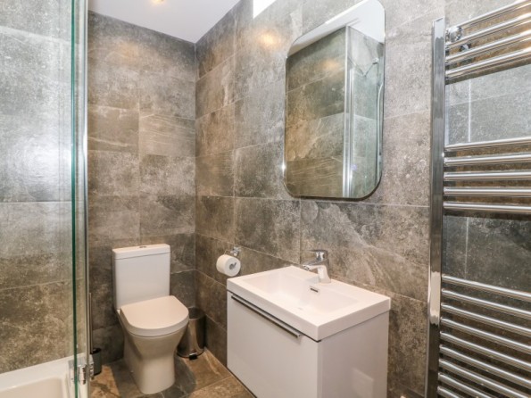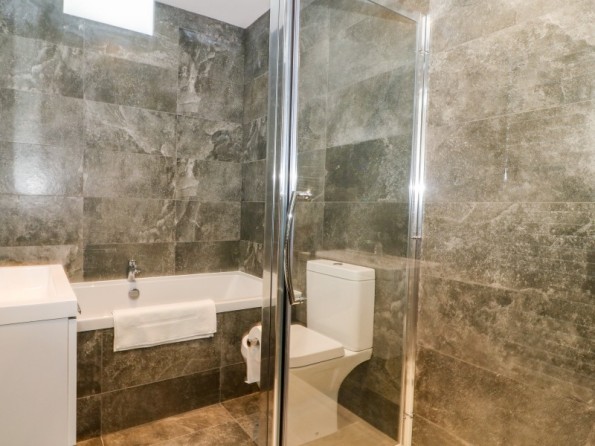Two bedrooms: 1 x family room with one super-king-size (zip/link, can be twin on request) and one single with en-suite bath, shower over, basin, heated towel rail and WC, 1 x super-king-size with en-suite walk-in shower, basin, heated towel rail and WC. Cloakroom with basin and WC. Open-plan living space with kitchen, dining area and sitting area