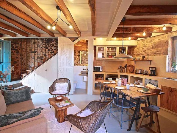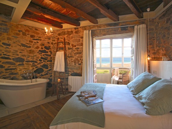 Tucked away in a small rural village in the beautiful region of Galicia in Spain, you will find Mirador das Areas, a boutique stone house where you can relax on the terrace, dip into the plunge pool and enjoy wonderful views of the beach dunes and the sea beyond. This house is a real treat.