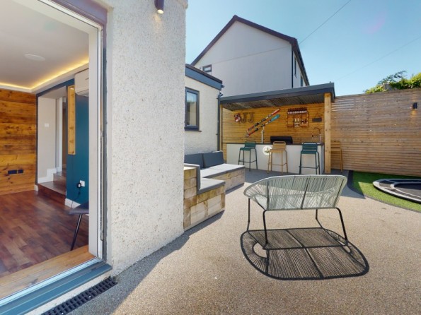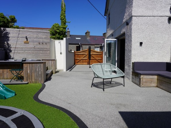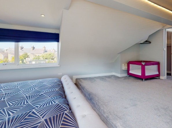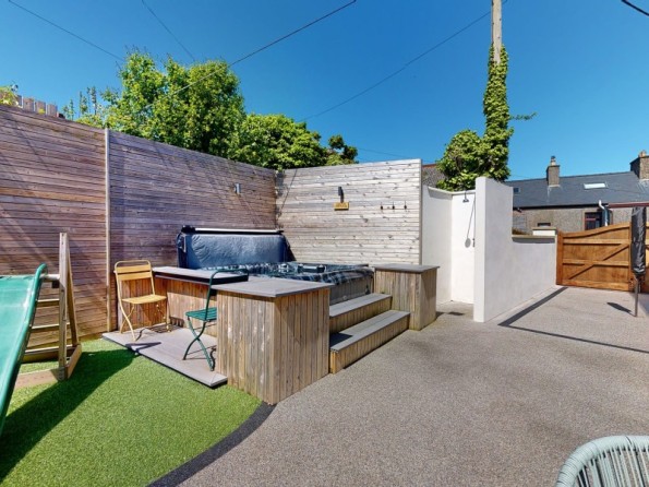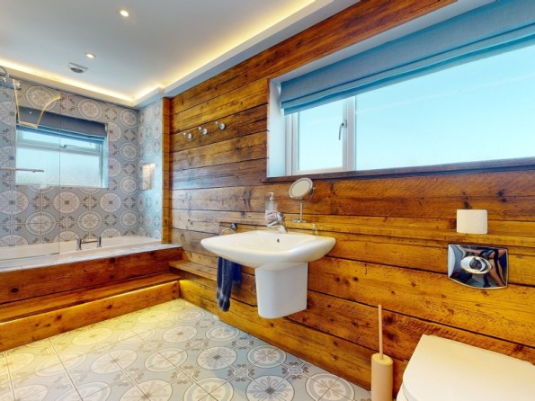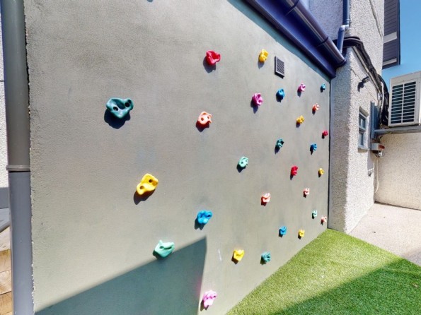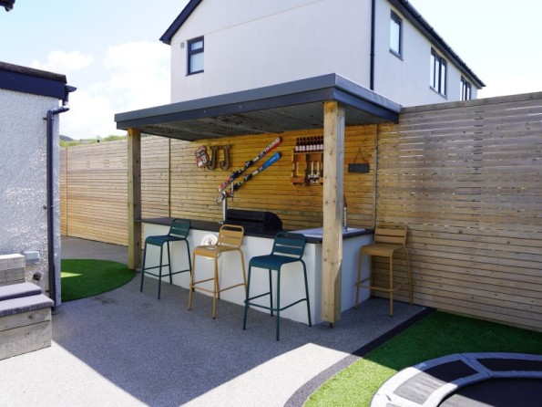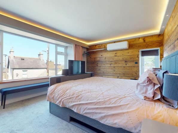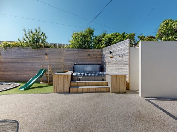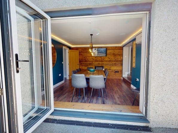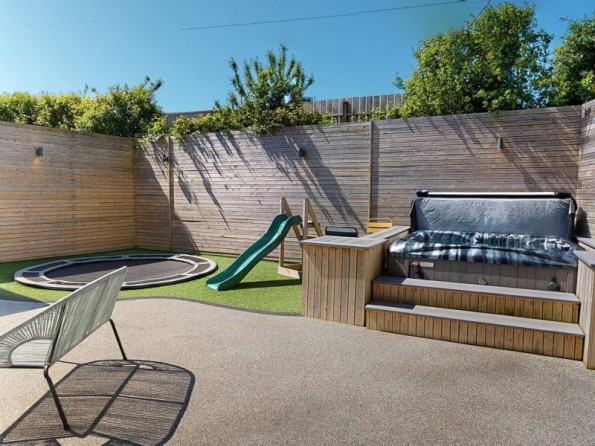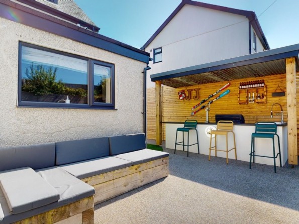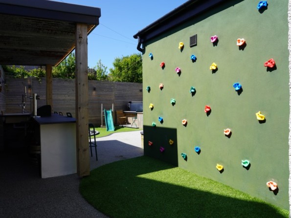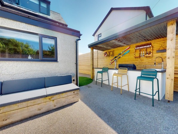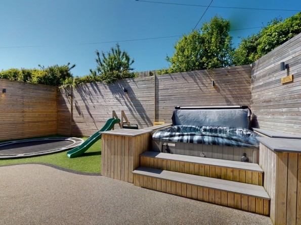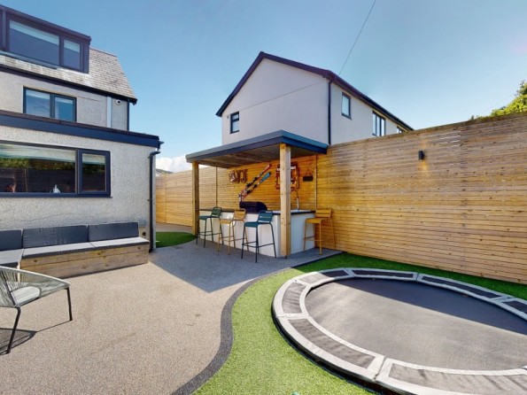 Murmur Y Mor is a spectacular three-storey 'Smart' property resting in Nefyn on the coast of Wales. There are six bedrooms in the property sleeping a total of sixteen guests, including a children's room with two doubles and two child's bunks, a king-size with an en-suite bathroom, a second-floor king-size with cot, two king-size rooms, and a second-floor twin, all with Smart TVs and served by a ground-floor wet room and a bathroom. There is also a kitchen, dining room and a sitting room with a woodburning stove. Outside you will find ample off-road parking with electric car charging point, and a rear enclosed garden with furniture, hot tub, sunken trampoline, climbing wall, bar, barbecue and an outdoor shower. There's no better choice than Murmur Y Mor for a luxurious family escape to Wales. Note: The maximum number of adults to stay is 14 and 2 children due to the bunk beds only being suitable for children up to the age of 10. Note: No Stags/Hens or similar at this property.