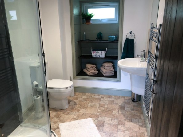 Two bedrooms: 1 x double, 1 x twin. Ground-floor shower room with shower, basin and WC, first-floor cloakroom with basin and WC. Kitchen. Sitting room with woodburning stove. Sun room with dining area.