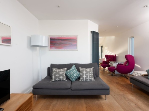Combining contemporary living with a great location, the house not only features a fabulous open plan kitchen/ diner and living area to create an inviting space for guests to converge in, but also has parking for two cars along with an outside shower for de-sanding under and surfboard storage for beach paraphernalia.