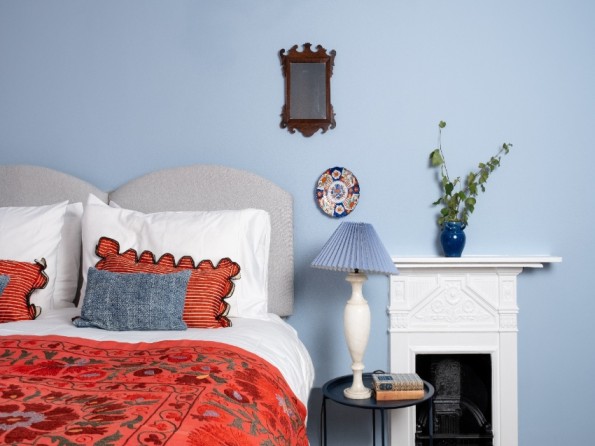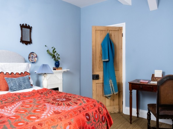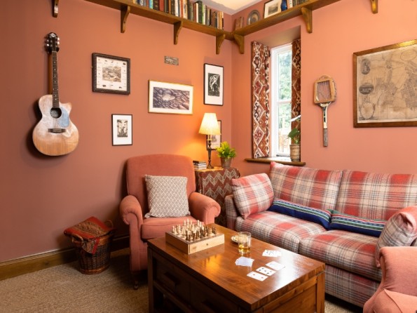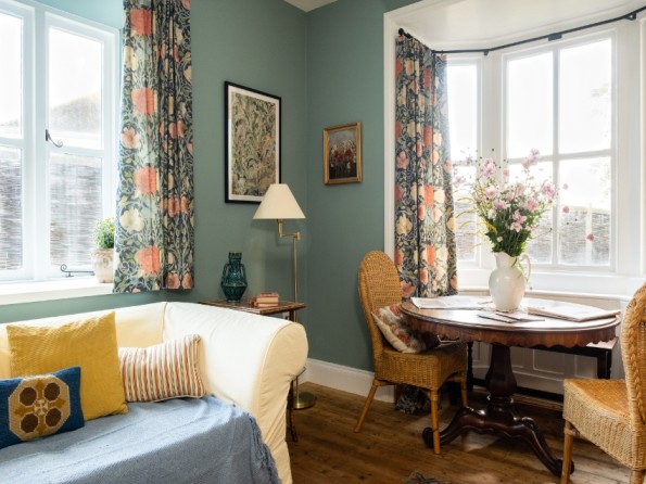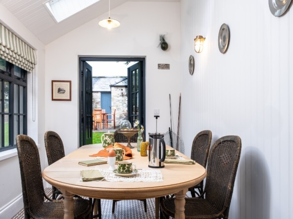 The house can accommodate up to six people in three bedrooms. The front porch has plenty of space for wellies, and there’s a classically tiled entrance hall which leads into the living room. Plush sofas and cosy decor make this an excellent space for relaxing in the evenings. There’s an additional living area with double aspect windows looking out onto the garden, with a period fireplace and wood burning stove. There’s a vinyl record player in this room with a good selection of old records. The kitchen has a luxury heritage feel, a modern range oven, Belfast sink and is superbly well equipped, including a dishwasher, washing machine and tumble dryer. The main dining table is in the conservatory which has high ceiling skylights and patio doors to the garden. There are three king sized bedrooms upstairs, each individually styled (beds can be reconfigured to create twin rooms if required). The main family bathroom is upstairs, and there’s an additional shower room downstairs.