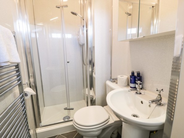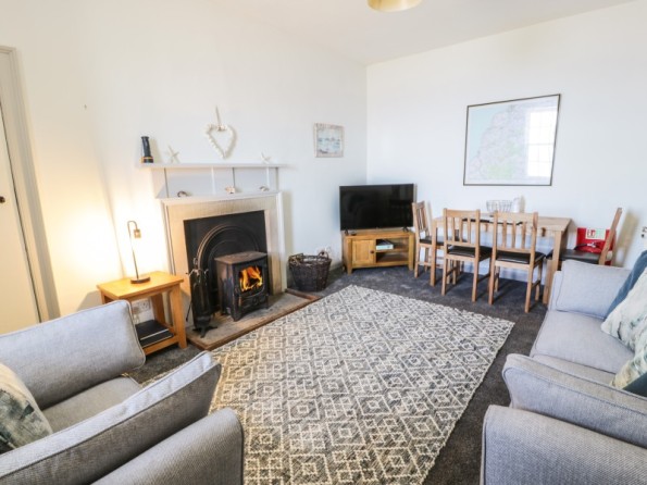 All ground floor. One double bedroom. Shower room with shower, basin, heated towel rail and WC. Kitchen. Living/dining room with woodburning stove.