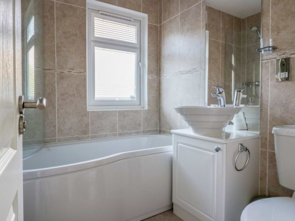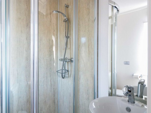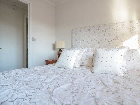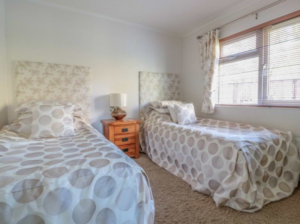 All-ground-floor. Two bedrooms: 1 x king-size with en-suite walk-in shower, basin and WC, 1 x twin. Bathroom with bath, shower over, basin and WC. Cloakroom with basin and WC. Open-plan living area with kitchen, dining area and sitting area with electric fire