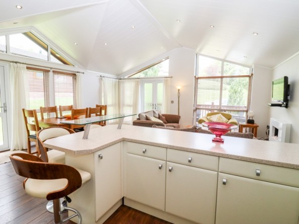 Oak Lodge is a single-storey lodge in the hamlet of Glasshouse near to Newent in Gloucestershire. The lodge sleeps four people and has one double bedroom with an en-suite, a twin bedroom and a family bathroom. Also in the lodge is an open-plan living area with a kitchen and sitting area with doors leading to a private terrace with outdoor furniture. One of a group of three, Oak Lodge is a superb holiday home in the beautiful Forest of Dean.