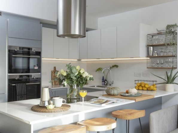 Beautifully designed the kitchen flows effortlessly and includes a large fridge/freezer, fan-assisted electric oven and grill, dishwasher. A range of small appliances include a toaster, kettle, microwave, *Nespresso coffee machine and cafetiere and vacuum cleaner. Adding to its functionality and design, the kitchen includes a work island with induction hob and extractor, and doubles as a breakfast bar with two bar stools