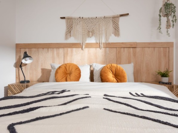 This beautiful bedroom features a comfortable super king size bed that can be configured to twins on request. Additional furniture includes two side tables and reading lamps, armchair and coffee table, clothes cabinet and a mirror.