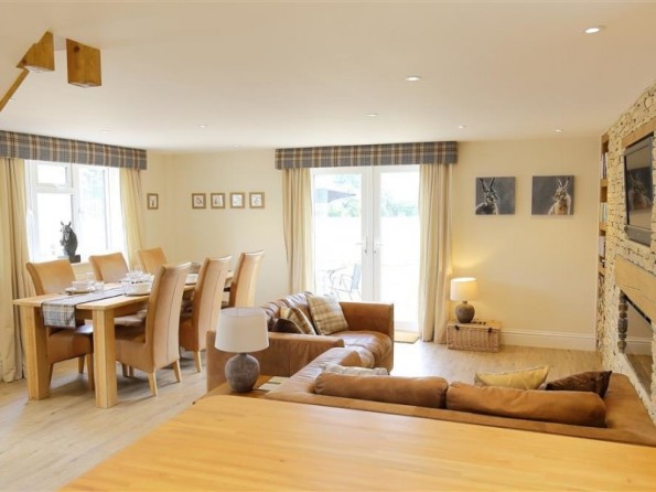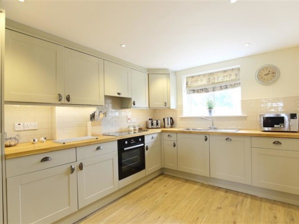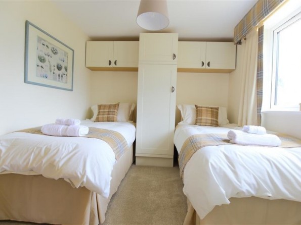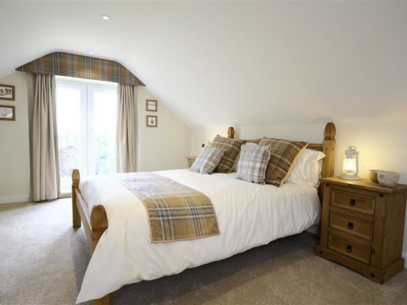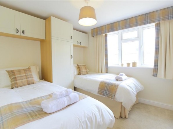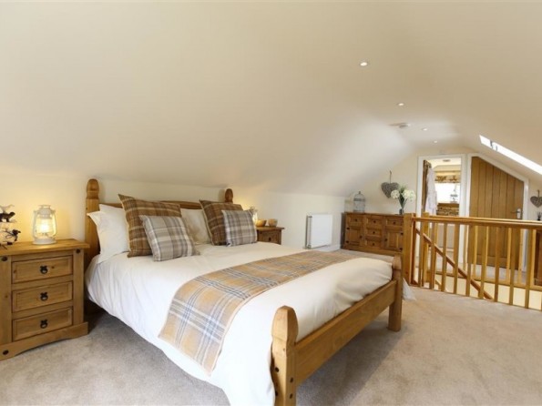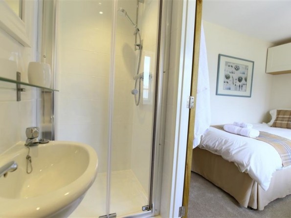Two bedrooms: 1 x ground floor twin plus ensuite shower room with shower, WC and washbasin, 1 x first floor kingsize double master suite plus ensuite bathroom with roll top bath, hand held shower, washbasin and WC. Living area. Kitchen.