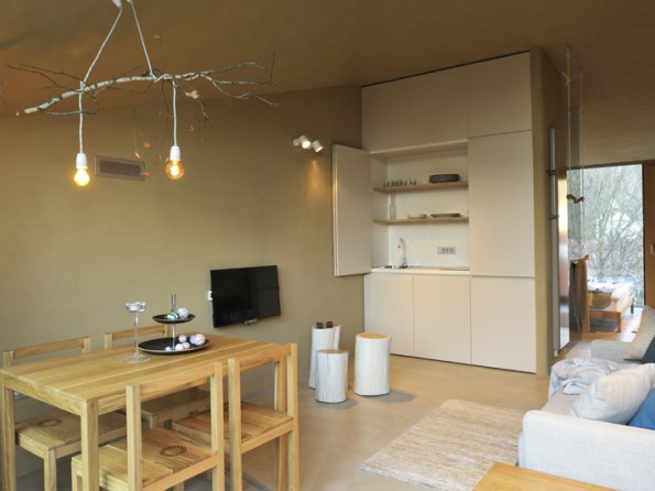 Each studio apartment has a living and sleeping area for two people, a small but fully equipped kitchen, an oak table and chairs, a large glass shower with the facilities for Kneipp therapy and an HD cable TV. Tableware, towels, an organic cotton bath robe, natural bed linen and premium cosmetics are provided.