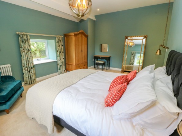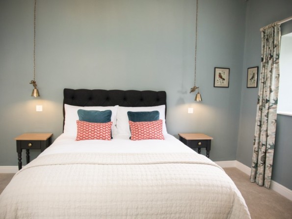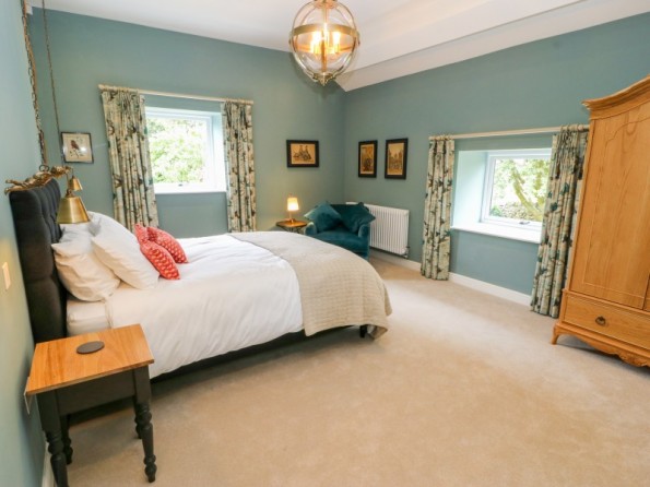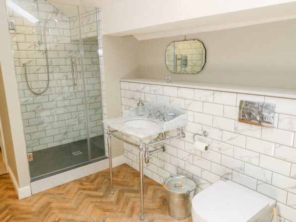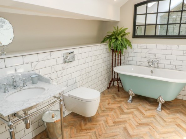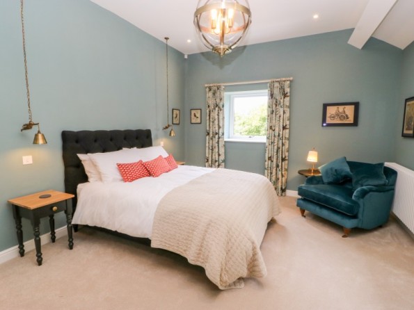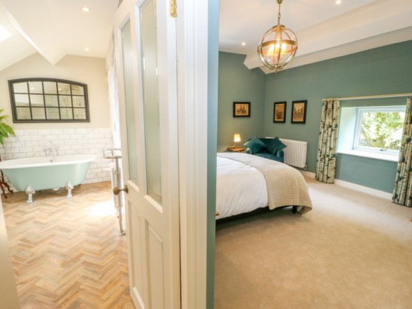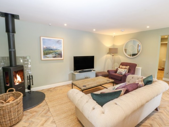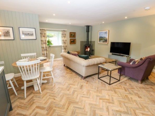 One king-size double bedroom with en-suite bathroom with roll top bath, separate walk-in shower, basin and WC. Open-plan living room with kitchen, dining area and sitting area with woodburning stove