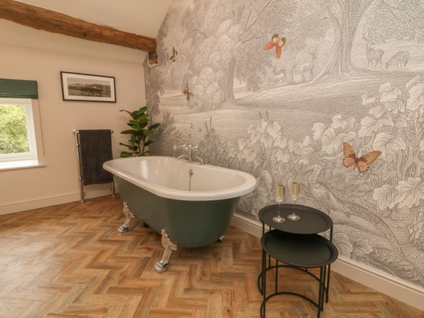Overlea Cottage is a barn conversion resting in New Mills near Hayfield in Derbyshire. Hosting a king-size with en-suite bathroom, along with a ground-floor shower room, this property can sleep up to two guests. There is an open-plan living area with kitchen, dining space, and sitting room with woodburning stove. To the outside, there is an enclosed garden with a lawn, patio area with furniture a hot tub, and a shared farm meadow garden, while off-road parking is available for one car. Overlea Cottage is a glorious base for a romantic retreat exploring the Derbyshire countryside.