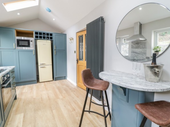 This gorgeous ground-floor annex rests in Llanrwst, Conwy. Off-road parking. Garden with furniture. Woodburning stove. Exceptional views. Betws-y-Coed 3.2 miles; Conwy 13.1 miles.